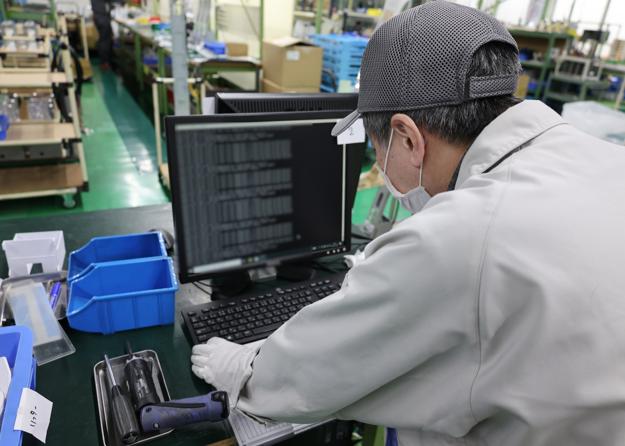 生産技術部門と連携しながら自社設計の治具を活用し、作業者間のばらつきを抑えた均一で安定した組立を行っています。