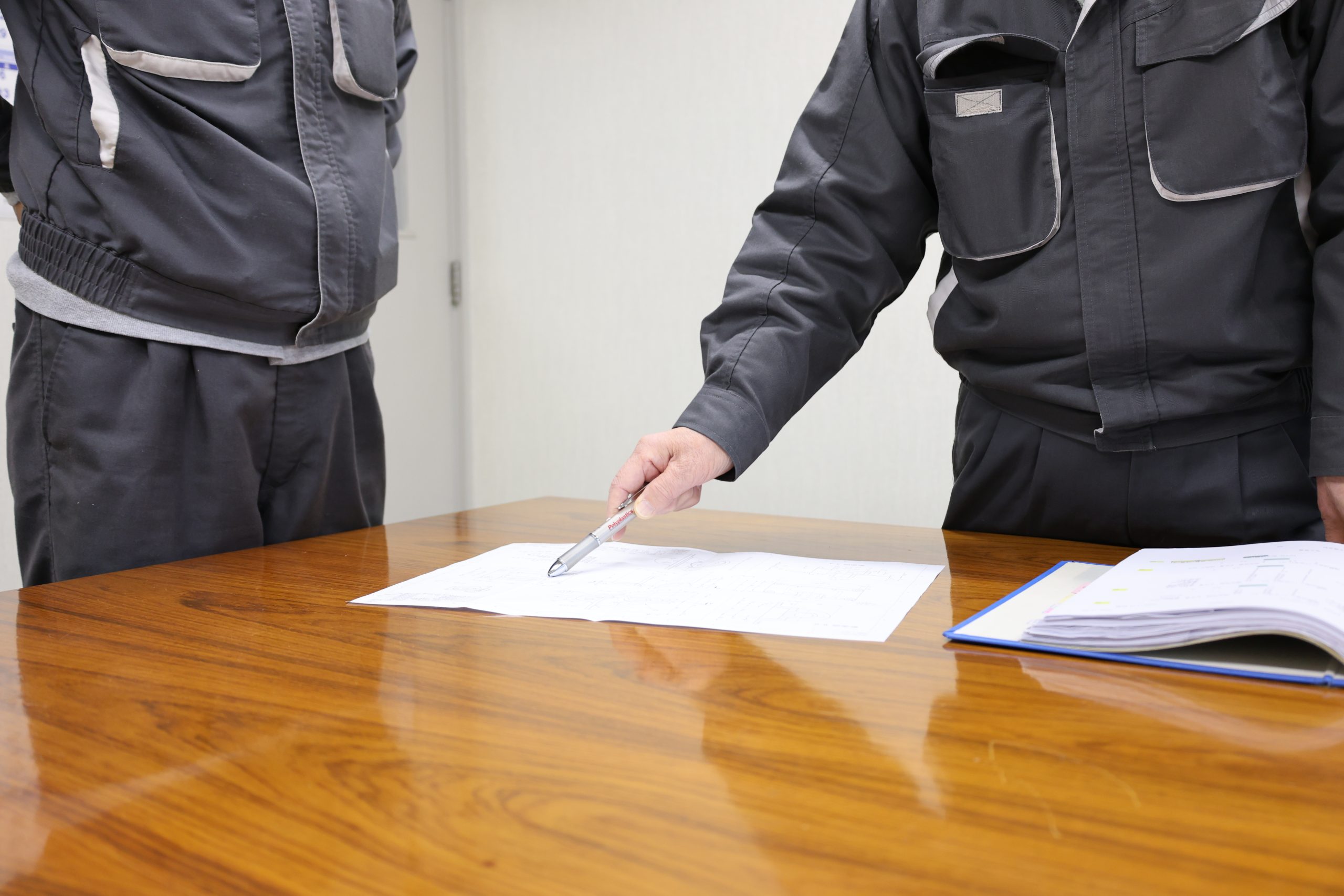 部品は内作・外注それぞれの製造指示書に基づいて次工程へ受け渡され、生産ラインが滞らないよう工程間の連携を徹底しています。
